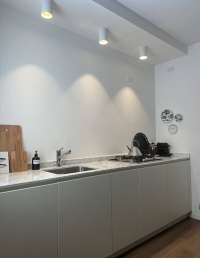 Het appartement beschikt over een ruime woonkamer en keuken, met oog voor detail ingericht en voorzien van alle gemakken. De keuken beschikt over een vaatwasser, gasfornuis, koelkast en Nespresso apparaat. Het marmeren aanrechtblad uit Carrara geeft de keuken een luxe uitstraling.